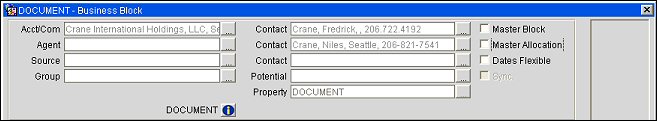 Create the business block as you normally would using the Business Block (Reservations > Blocks > Business Block) screen or when the OPS<version number> OPERA Sales and Catering license is active, select Business Management > Business Block from the main menu to display the Business Block screen. For a more detailed explanation of creating blocks see Business Block Header. Select the Master Allocation check box (located at the top-right of the Business Block screen) before saving the business block for the first time. The Master Allocation must be created for the property where the rooms will be deducted.