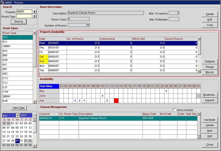 Understanding the Detailed/Property Availability Areas of the Rooms Screen