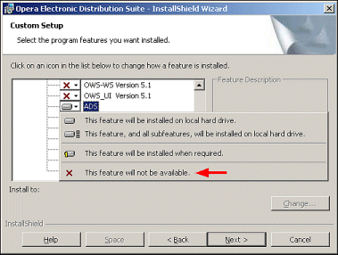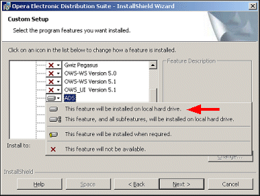 - Run the OEDS InstallShield Wizard and access the Custom Setup screen.