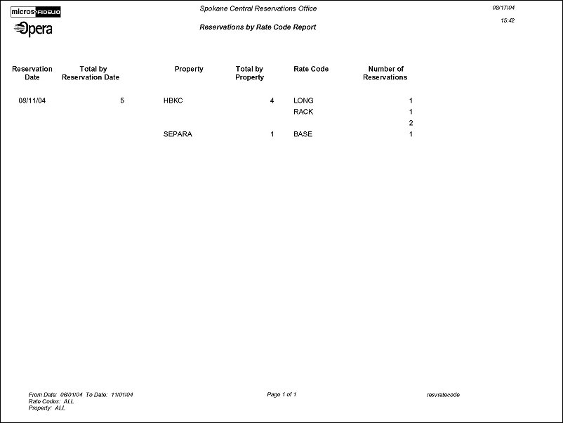 Reservation by Rate Code is a past-date report that displays the number of reservations per reservation date, property and rate code.