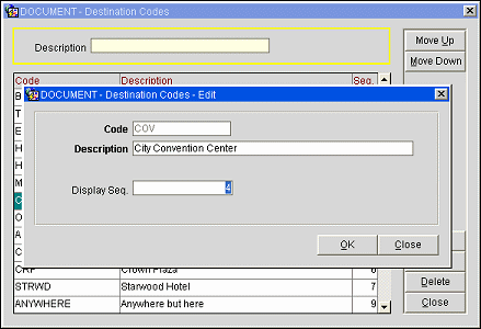 Adding and Editing Destination Codes